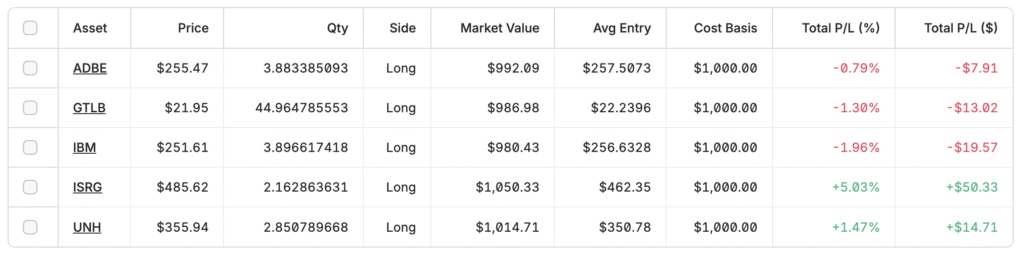 I built this after-hours, and the trades executed at open. Here’s where I stand at 1pm: